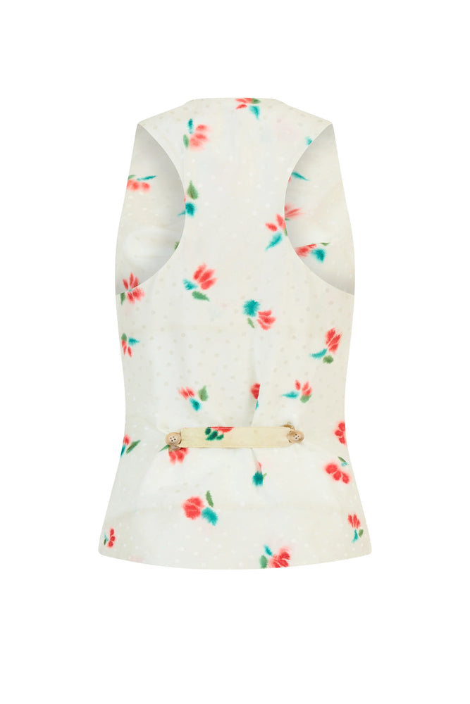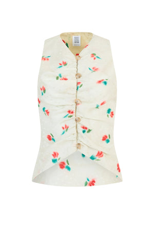 The All Buttoned Up Vest in Tulip Jacquard is a charming blend of structure and femininity. Crafted in White Multi floral jacquard, this vest features delicate tulip motifs and subtle textured dots for a vintage-inspired touch. The ruched button-up front creates a flattering, cinched effect, while the tailored silhouette adds a refined yet romantic appeal.